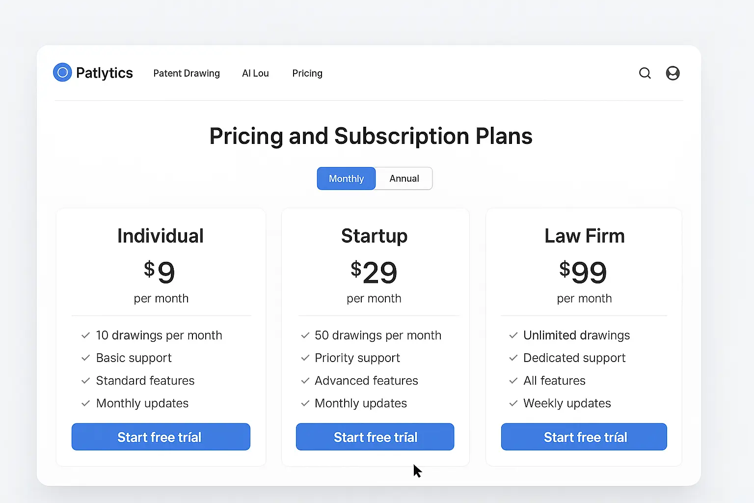 Pricing is one of the most important factors when evaluating any legal tech product. Patlytics Patent Drawing Software has structured its subscription model to make the tool accessible for a wide range of users, from solo inventors to large IP departments. Transparent tiers and predictable costs ensure customers know exactly what they’re paying for—without hidden fees or unexpected charges.